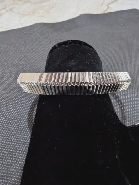 The RajRidhi™ Kada is a powerful expression of Sikh faith and masculine elegance. Crafted in 999 hallmark pure silver, this kada showcases a vertical fluted 3D cut design accented with a dotted central line, giving it a distinctive modern edge while retaining traditional significance.