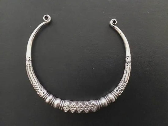 Oxidized for a matte antique finish, TribalHansuli is a striking heirloom piece that adds soul to your festive or ethnic look — whether layered over a saree, kurta, or even styled as a minimalist statement on bare skin.
